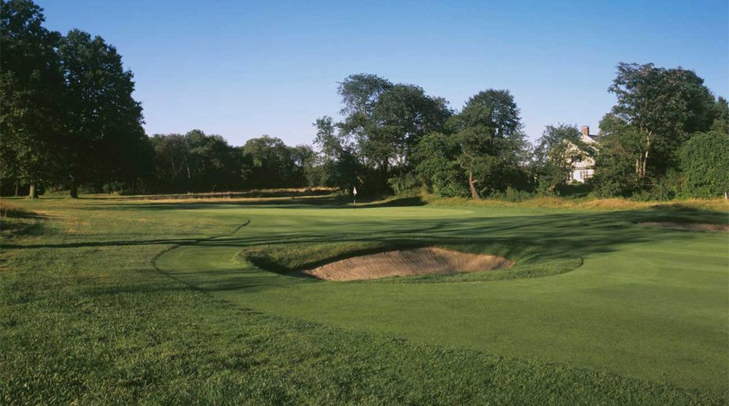 Devereux Emmet and Walter Travis share credit for this old-school design that plays across Hempstead Plain on Long Island. The water is 10 miles both north and south, so sea breezes are a frequent companion. Laurie Auchterlonie won the 1902 U.S. Open here with record scores, owing to the debut of the longer, more durable Haskell ball. Garden City’s tilted greens, like the 10th and 15th, are lay-of-the-land architecture at its highest form. To understand what it means to “get the most from the land,” study the small parcel around the clubhouse that contains the 1st, 2nd and 18th holes, each stellar in its own right. (Photo: Patrick Koenig)