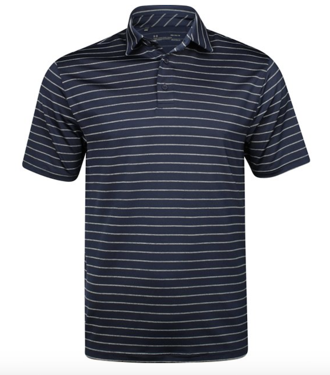 Made from lightweight and stretchable fabric for maximum comfort, Under Armour’s Playoff 2.0 Tour Stripe polo offers freedom of movement throughout your round and beyond. It’s technical features include UV and odor protection, breathability and moisture-wicking, and wrinkle and strinkage protection. The buttoned placket, two-tone yarn dye stripes and soft hand feel will make this one of your favorite polos in your closet.