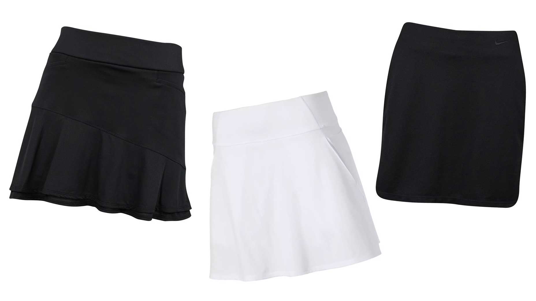This skirt from Nike is a modest length and has comfortable inner shorts. The pockets are on the outside, like more traditional skirts, plus it has a back pocket â perfect for your glove and/or scorecard.