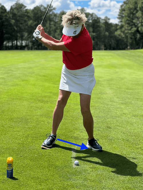 “Professionals strike the ball and then take a divot afterwards,” says Tombs. “So we want to strike the back of the ball before the clubhead touches the ground, which results in your low point occurring after impact.”