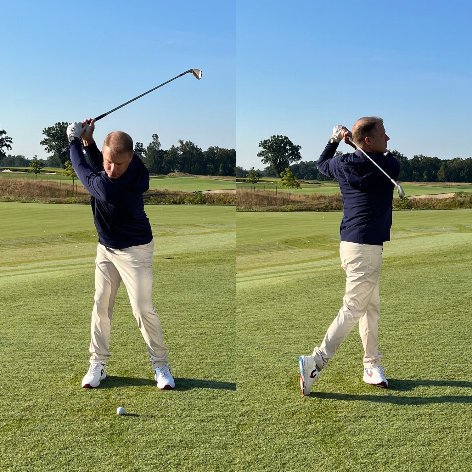Now, it’s up to you whether you think about the backswing and follow through lengths on the course, since everyone is a little different in that regard. But in practice, knowing how far you take the club back and through will only help you feel each shot, allowing you to have better approach shots during your next round.