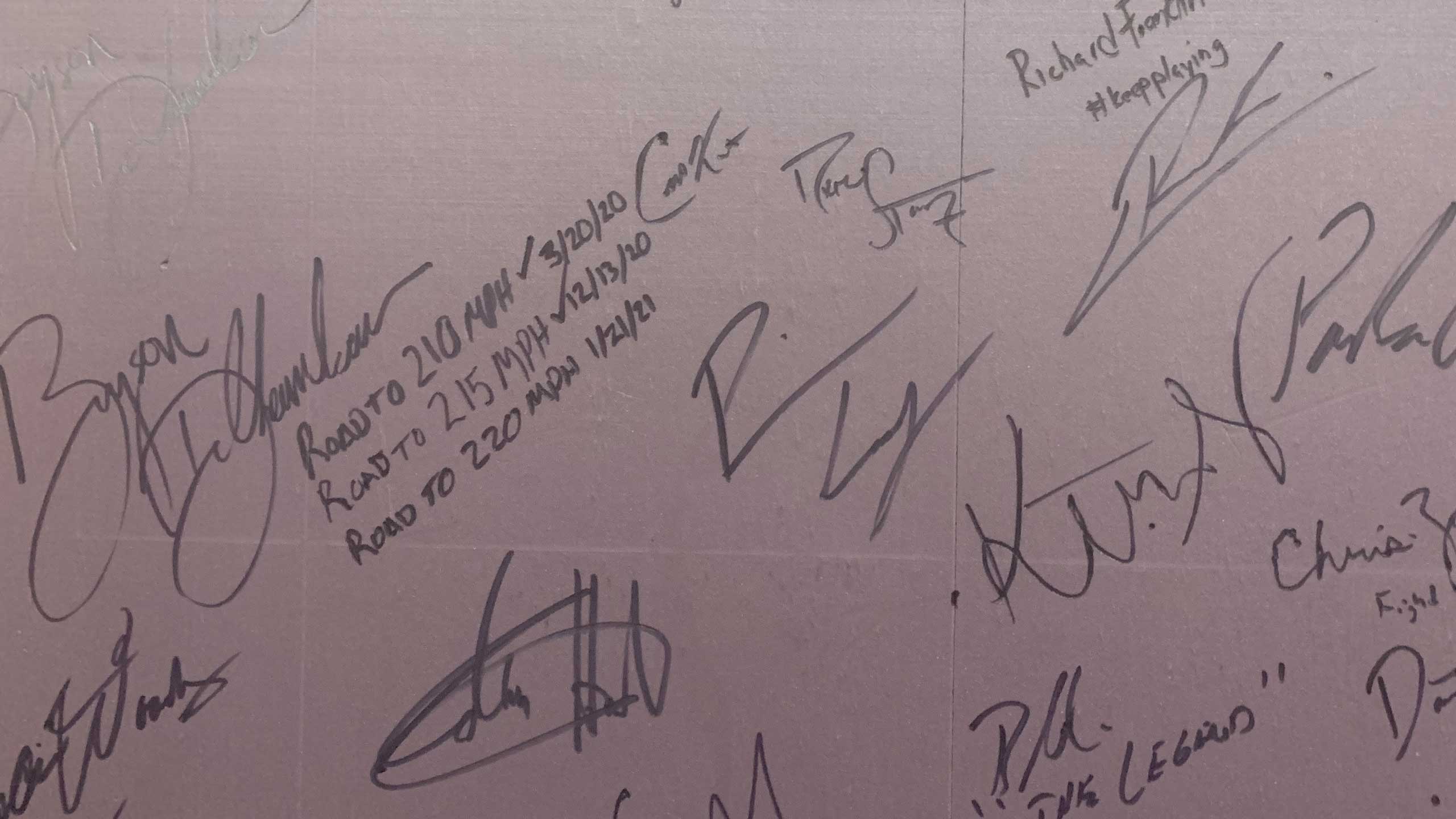 That’s today’s goal: 215 mph ball speed. Swing the driver fast as you can as many times as it takes to cross that threshold. DeChambeau hasn’t accomplished it yet, and he’s reminded by some ink on the nearby wall. “Road to 215 mph” is written on the styrofoam inserts that protect the windows in this spacious 5-bedroom. The message has been there for five weeks, ever since he reached his previous goal of 210.