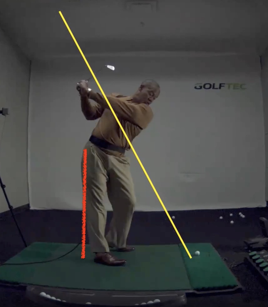 This had the added bonus of introducing more “turn” into his golf swing. That’s great for power, and one way to help hip turn instead of lift is to focus on straightening a trail leg on the backswing.