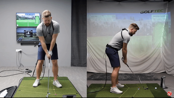 Once you’re comfortable doing this, you can slowly start progressing. Start with hitting balls with an abbreviated backswing (with your club shaft getting to parallel to the ground), then hit a shot with a half-backswing (with your left arm getting parallel to the ground).