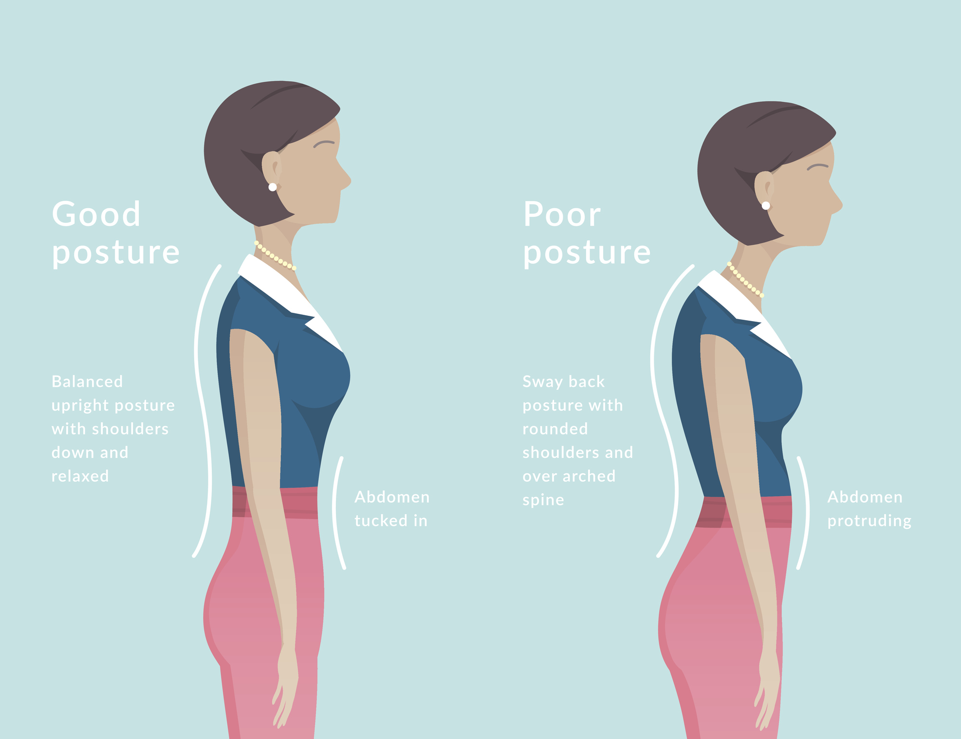 Poor posture — where your shoulders are rounded and your abdominal muscles protrude outwards — doesn’t just put excess strain on your neck and back. It also effects the very way you draw breath.