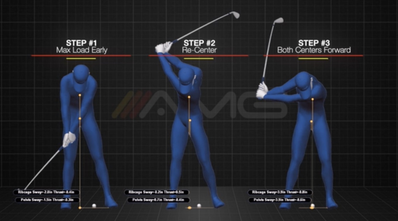 Now, since John shifted too much away from the target during the backswing, he had to really make sure he shifted forward enough on the way down. When we compared John to a model swing and looked at the front side of his hip, he didn’t shift forward enough on the way down.
