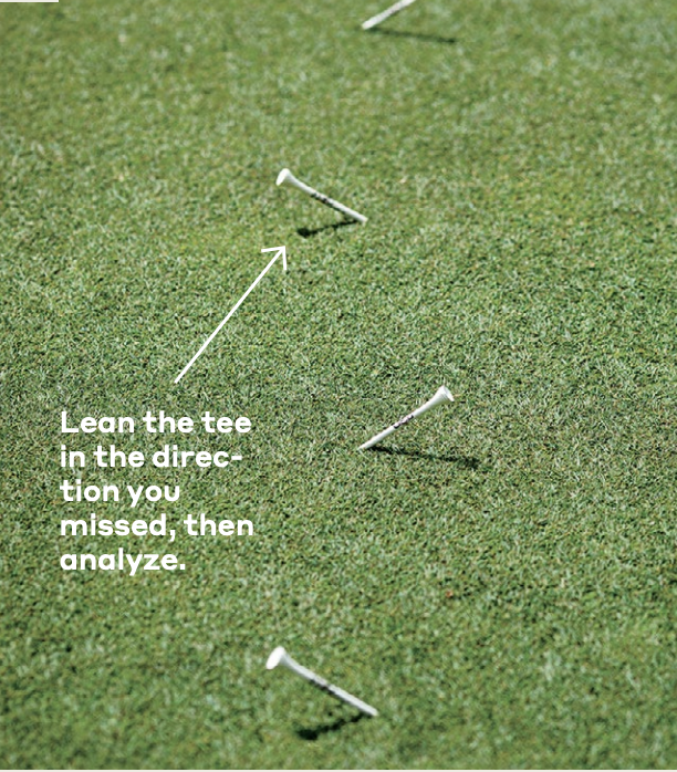 3. If you make a putt, push the tee into the ground. If you miss it to the left, tilt the tee to the left. If you miss it to the right, tilt the tee to the right.