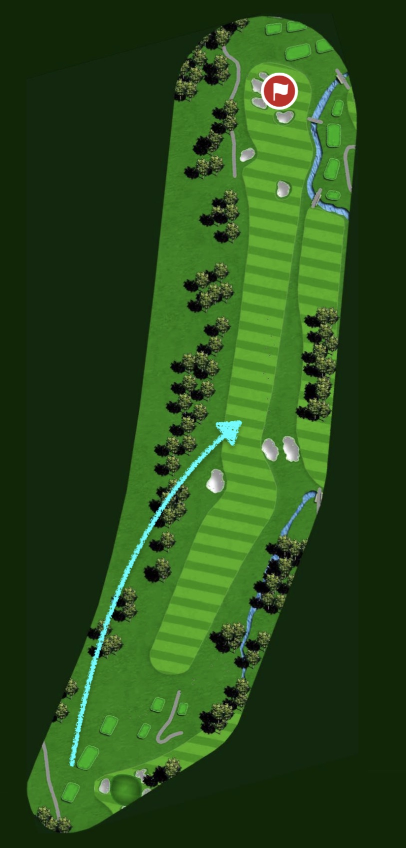The hole with designed with one obvious intention: Aim at the bunkers on the right and hit a draw. Execute, and your ball will trundle down the fairway. The hole becomes a long two-shotter. Don’t, and you’ll need to get home in three.