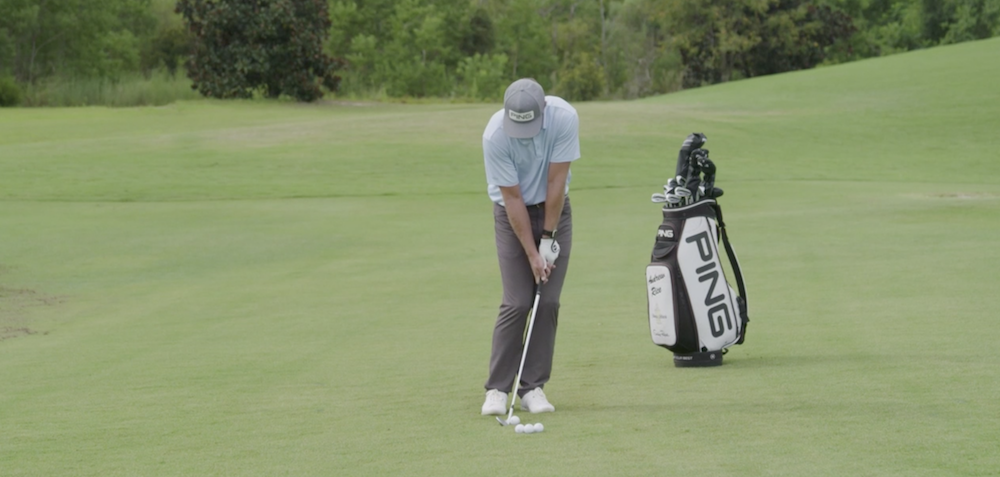 In episode two of the series, Rice addresses the bad habit of leaning too far back on your chip shots. He says that most golfers know they need to keep most of their weight on their front leg when they setup to hit a chip, but sometimes they compensate the awkward feeling by leaning their upper body back away from the target.