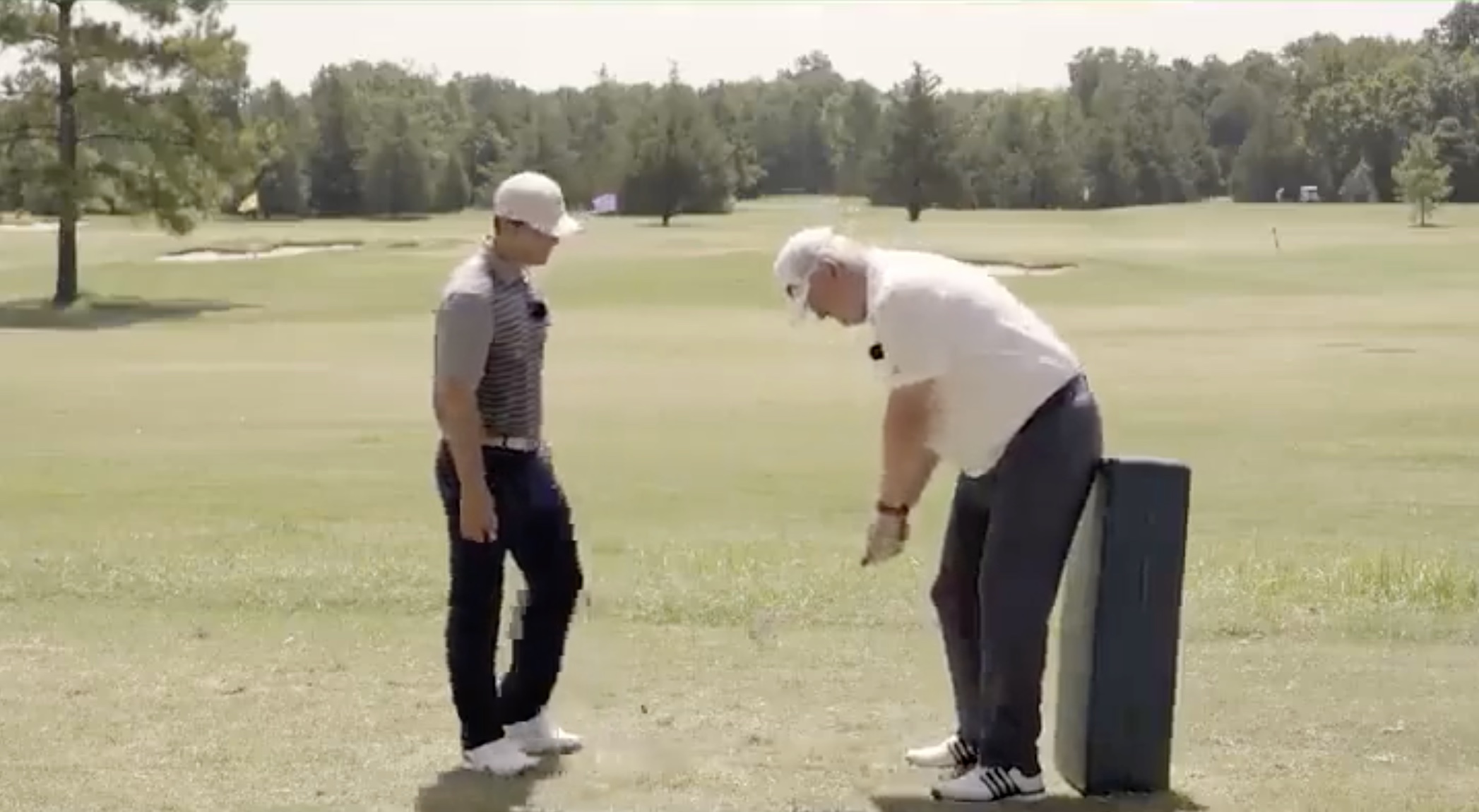The first drill is to set up so your feet are about a clubhead’s distance from a chair, box, or golf ball, then get into golf posture. Your rear end should be resting up against the object slightly, but not enough to push it over. Do all that and you’ll be in an ideal setup position, ready to start hitting golf balls, Webb says.