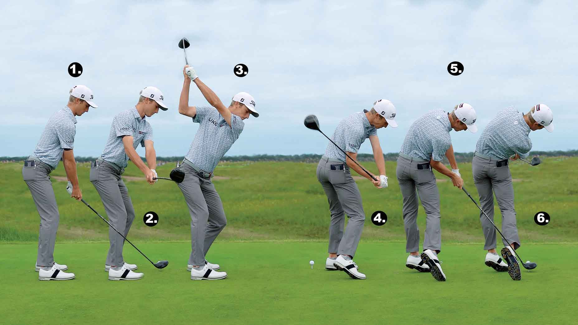 He can’t weigh more than 160 pounds dripping wet, and though you wouldn’t describe him as “ripped,” he’s what you’d call “golf strong,” capable of executing any move or position without the need for bulk. That would just restrict his mobility, which is his number-one asset. As you can see in the sequence above, he creates excellent stretch-shorten cycles throughout his motion, giving him a high range of torque and speed where it counts.