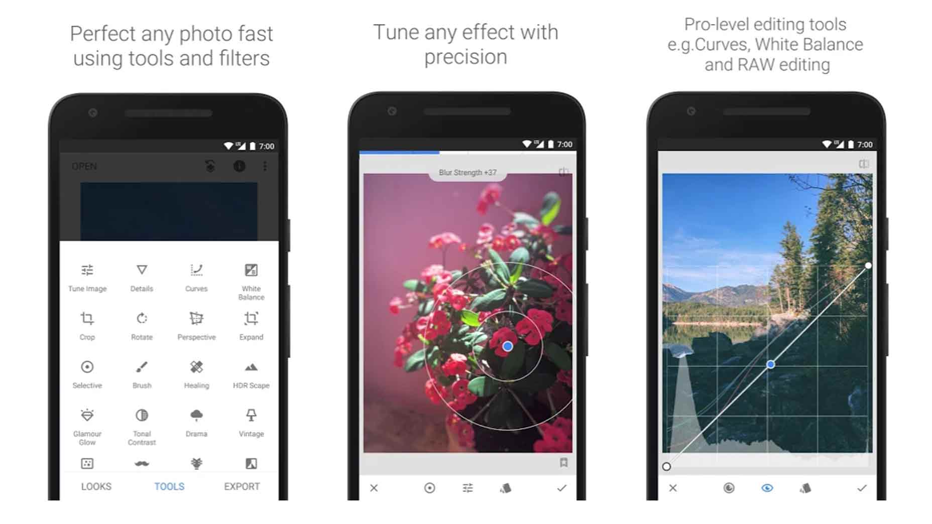This Google app is one of the most powerful apps I have ever seen. It’s a pocket version of some more expensive programs we use to edit our photos. From range masks to cloning and healing, you can do just about anything you need to clean up an image or fine-tune details. Being able to dodge (lighten) and burn (darken) areas of your photo like a sky or shadow is extremely useful. But remember, there is potential to overdo it!
