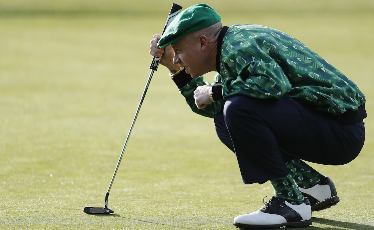 Rapper Macklemore, who you may know from his hit song Thrift Shop, probably bought this golf outfit from a thrift shop, but he certainly didn’t buy his golf clubs there. Macklemore was spotted using a new Titleist Scotty Cameron 2019 Teryllium T22 Newport putter, and he also has a set of PXG 0311 Extreme Darkness irons in the bag.