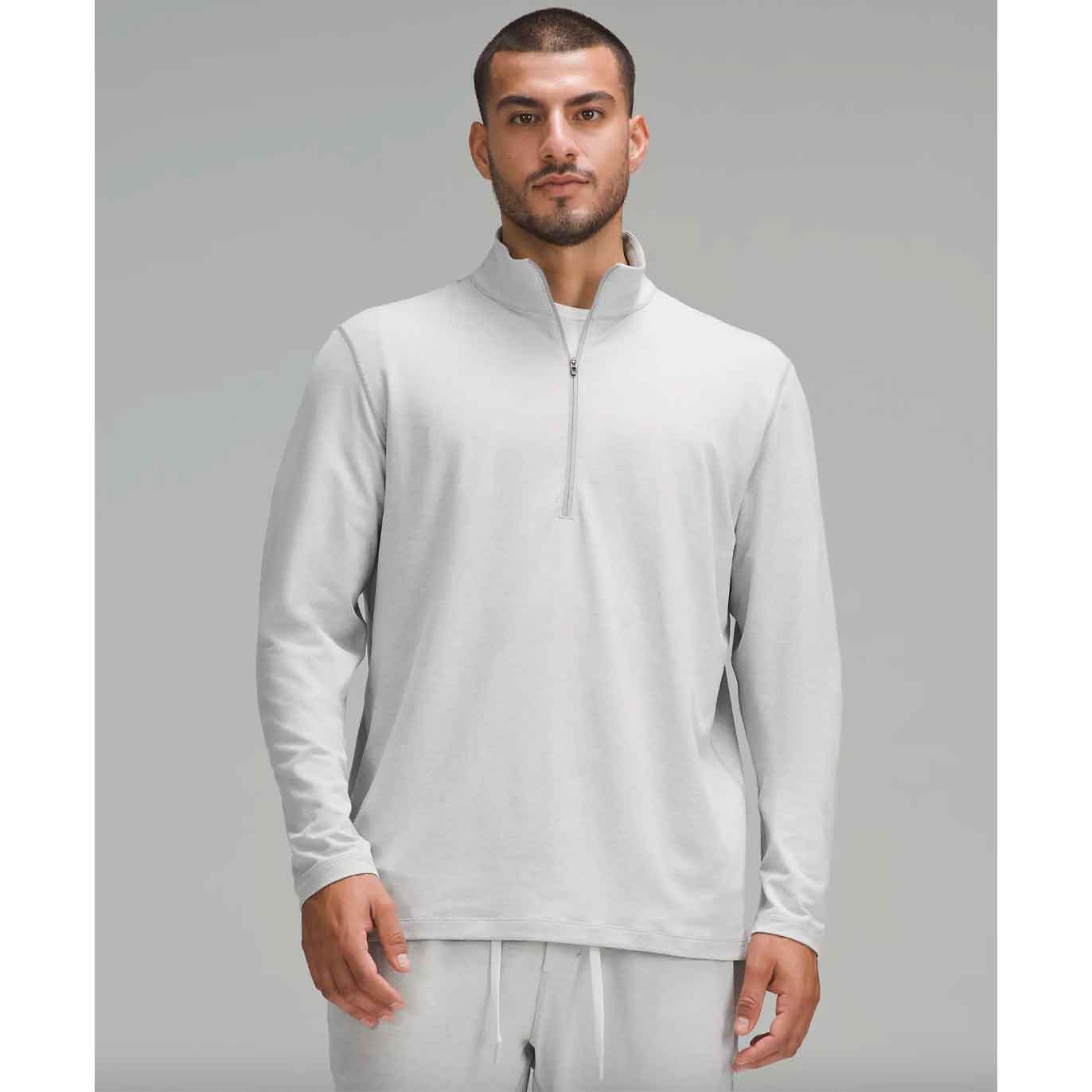 “Whenever it’s a bit chilly, I throw this half zip on because the stretch allows me to move and play at my best while keeping me warm,” Lee says.
