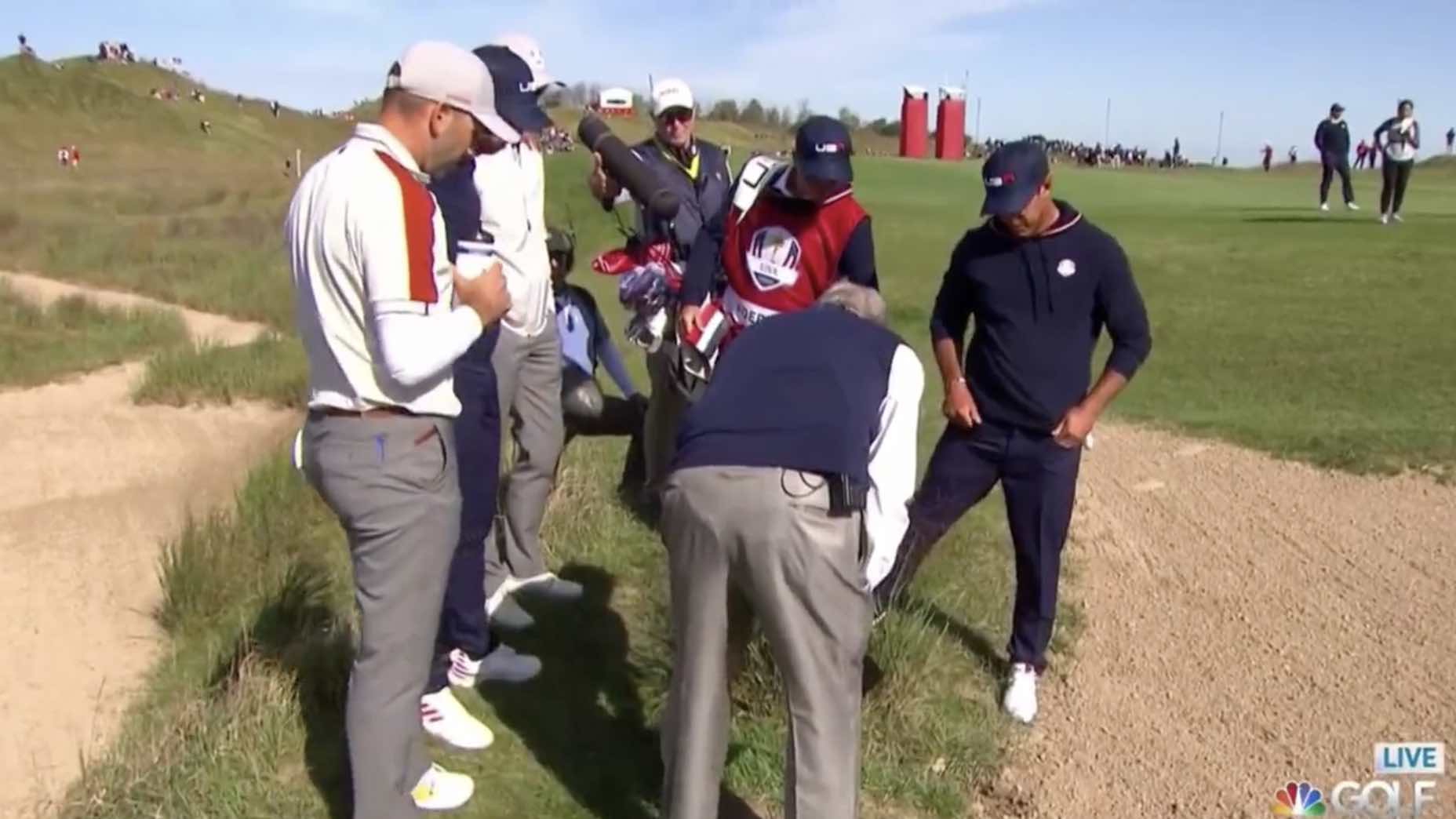 Ryder Cup drama is heating up on Day 2. Not long after Justin Thomas gestured he was annoyed that he wasn’t conceded a putt in his match, Brooks Koepka and his group had to delay their match while waiting for a detailed ruling to unfold near a fairway bunker.