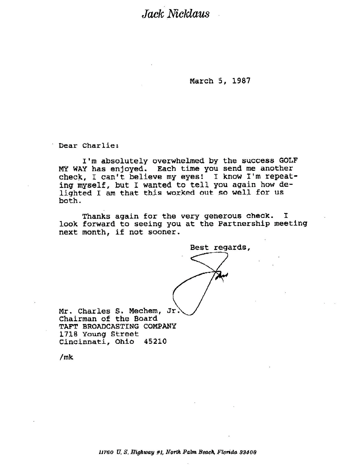I recently came across an old letter from Jack, which speaks loudly to the success of the video:
