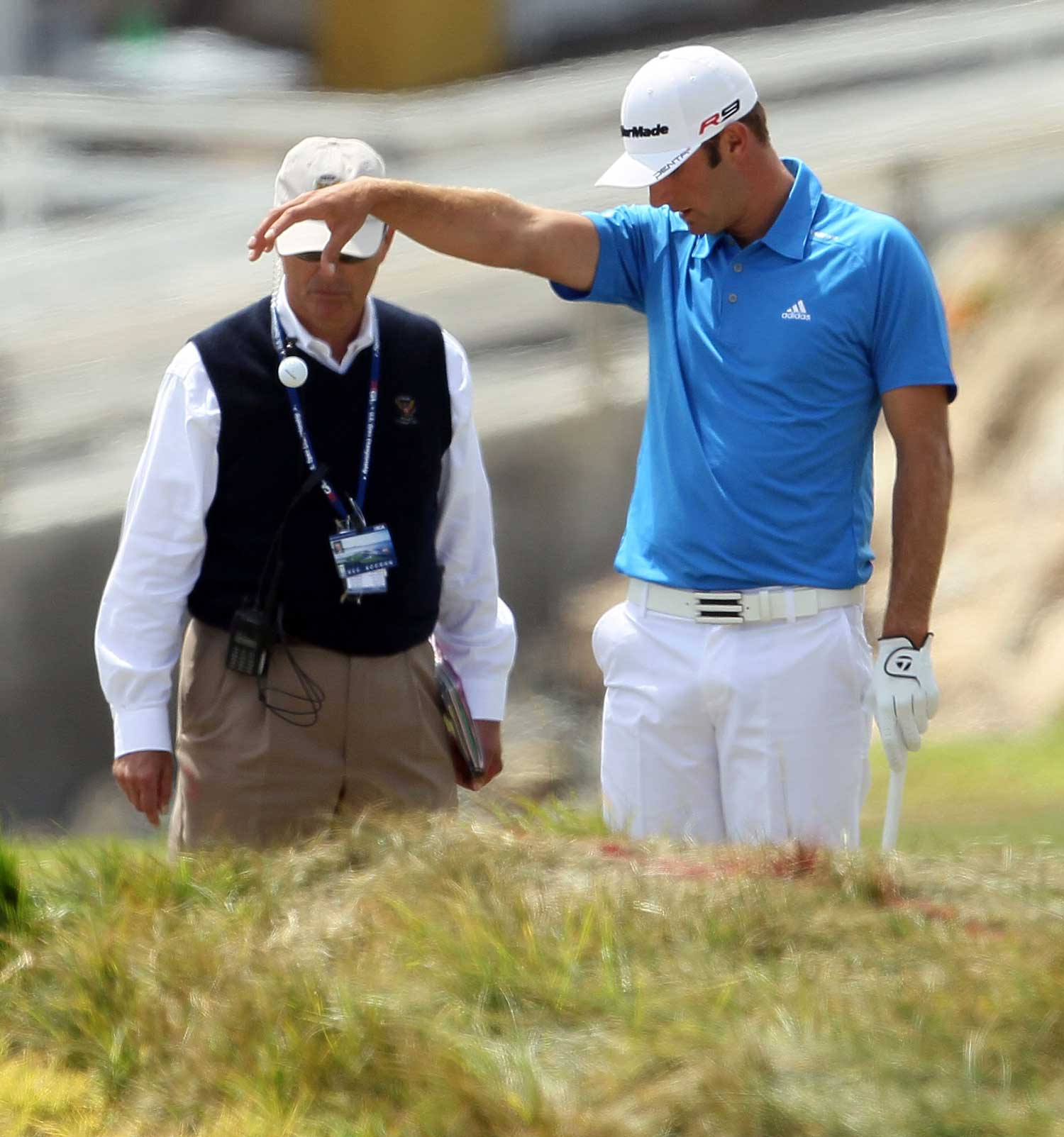 Dustin Johnson, his caddie Bobby Brown and a USGA rules official look into a hazard on the 4th hole during the final round of the 110th U.S. Open at Pebble Beach in 2010. Johnson held a three-shot leading entering the final round, but he shot a final-round 82 and tied for eighth.