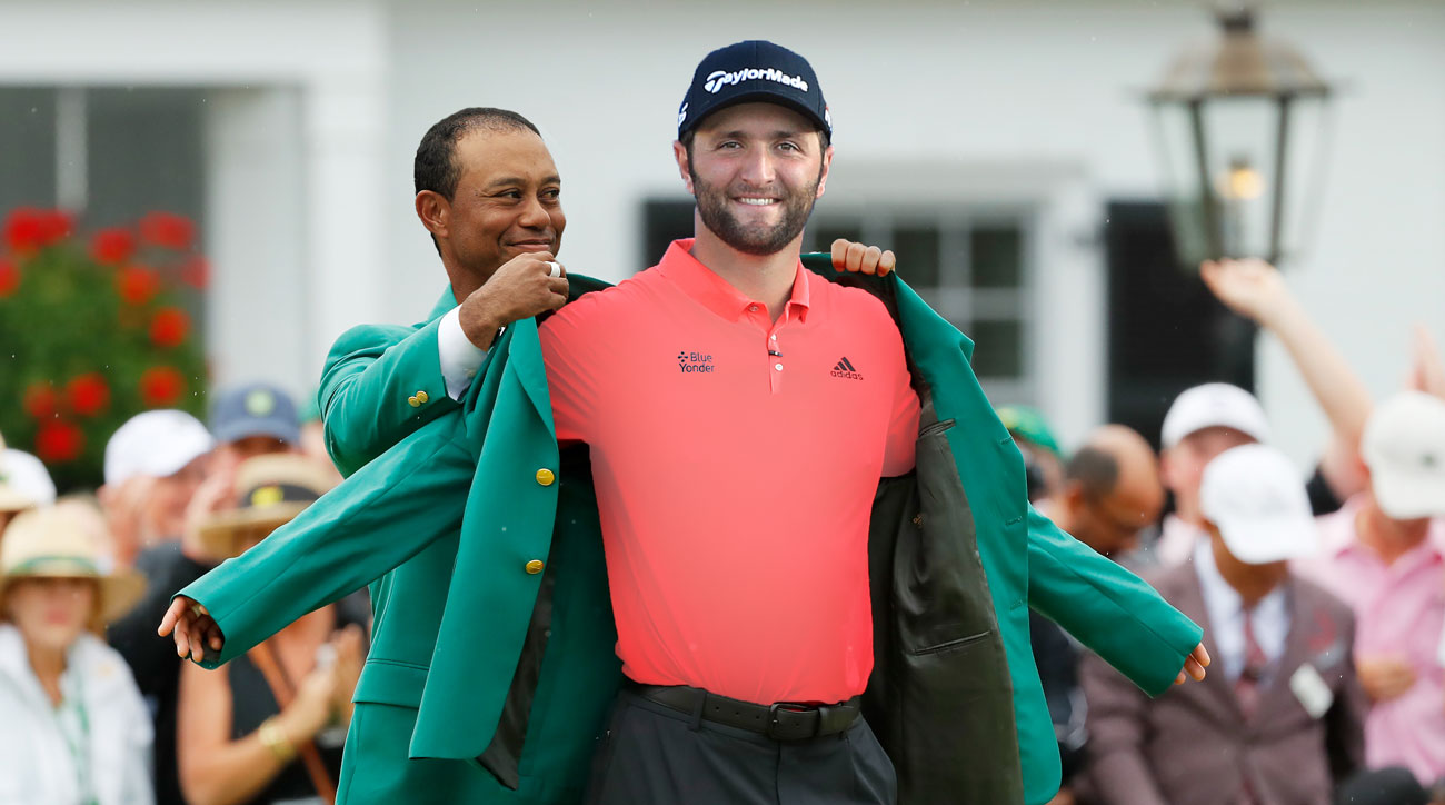 With his (simulated) win, the 25-year-old phenom vaulted ahead of McIlroy into the No. 1 spot in the world ranking. He also had the treat of his childhood idol, Tiger Woods (who finished T57 in his title defense), placing the green jacket on his shoulders. Vamos!