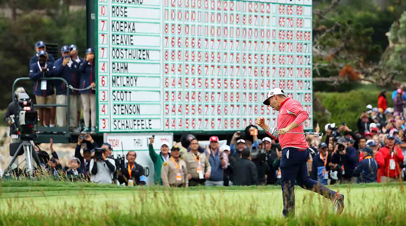 But one thing that was perfect was the 30-yard second-shot chip he played on the par-3 17th, from the green, on Sunday. That shot will go down as one of the Top 100 Clutch U.S. Open shots ever. We say that in part because had it gone wrong — it could have gone horribly wrong — it could have led to a career-defining double or worse. After all, it’s not like Woodland had had any experience playing delicate shots with golf’s most important title hanging in the balance. It also belongs in the Top 100 because he flat-out nailed it: a low, heel-up, toe-down, no-divot chip-pitch that left him with a tap-in par. It was the shot that won him the title. His playing partner, Justin Rose, the 2013 U.S. Open winner, gave him a fist bump. They both knew what it meant. It meant that Woodland could make a bogey on the last and still win. Instead, he made a birdie.