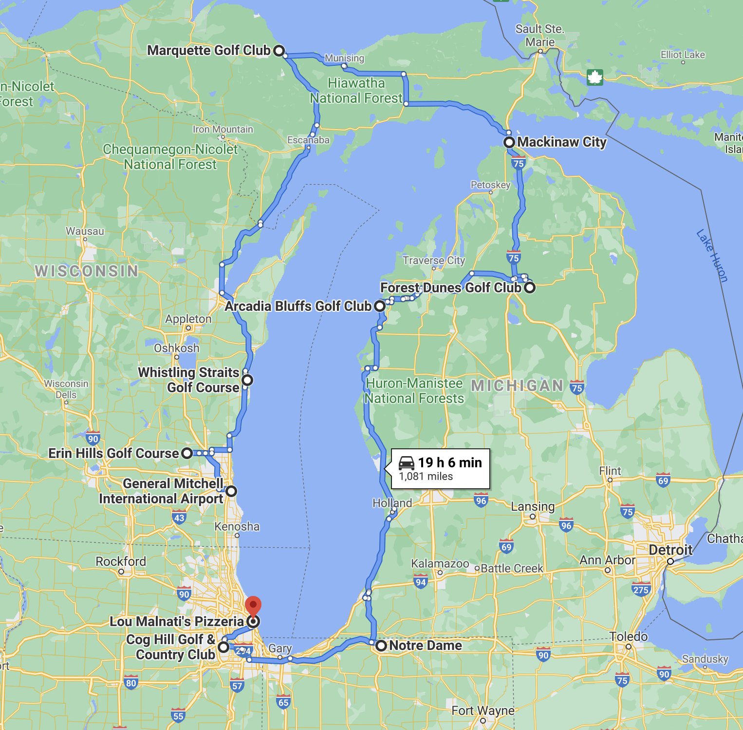End point: Lou Malnati’s Pizza, in Chicago