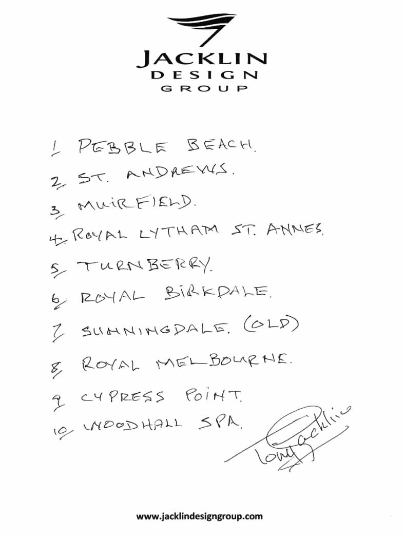 Indeed, Jacklin’s favorite course is Pebble Beach, the very same track where Graeme McDowell became the next European to claim a U.S. Open in 2010. But in truth, Jacklin’s preferences reflect a love affair with the game that dates back to his childhood country of origin. St. Andrews, Muirfield, Turnberry — they might not be first on his list, but these European treasures reflect the bulk of Jacklin’s top 10 and his design influence.