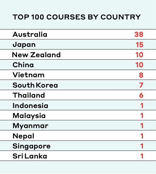 GOLF’s Top 100 ranking of the best golf courses in Asia-Pacific, categorized by country